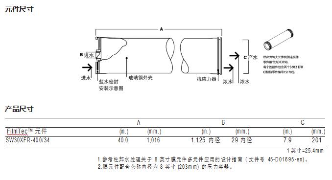 FilmTec™ SW30XFR-400/34 膜元件