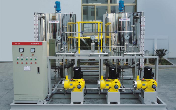 本裝置主要包括藥液溶配系統(tǒng)、計量投加系統(tǒng)、安全系統(tǒng)和控制系統(tǒng)等四部分。