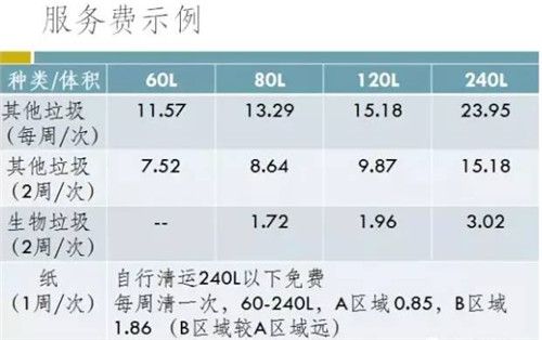 在漢堡,如果預訂一周一次的其他垃圾運輸服務的話, 60L的收取每月11.57歐元的費用,80L的13.29歐元/月,如果兩周運一次的話分別是7.52歐元(60L)和8.64歐元(80L)。而生物垃圾便宜很多,80L的兩周一次每月1.72歐元。輕質包裝不用向市民收取垃圾收運費用,因為德國有一個綠點制度,生產廠家已經繳納了費用,用于自己產品使用后所產生垃圾的清運和處理。