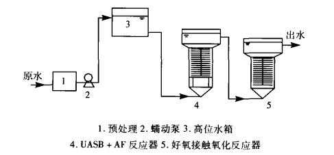 UASB+AF復合厭氧工藝具有水力停留時間短,處理效果好的特點,尤其對于高、中濃度的有機廢水,是一種先進、高效的厭氧處理工藝。UASB+AF復合厭氧工藝流程圖如下: